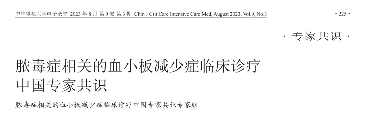 脓毒症相关的血小板减少症临床诊疗中国专家共识专家组. 脓毒症相关的血小板减少症临床诊疗中国专家共识[J].中华重症医学电子杂志,2023,9(3):225-240
