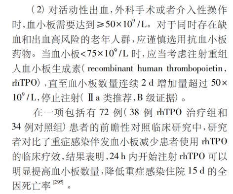 Wu Q, Ren J, Wu X, et al. Recombinant human thrombopoietinimproves platelet counts and reduces platelet transfusion possibilityamong patients with severe sepsis and thrombocytopenia: a prospectivestudy [J]. J Crit Care, 2014, 29(3): 362-366.